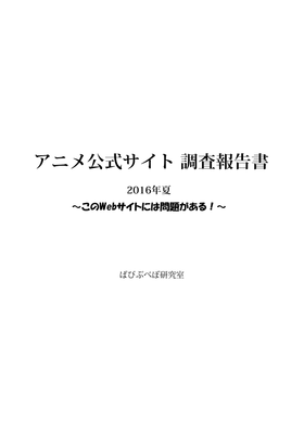 アニメ公式サイトのドメインのWHOIS登録情報やWebサーバなどを調査した情報本。 2016年夏放送開始のアニメについてのデータを収録。 発行日 2016-08-12 初頒布イベント コミックマーケット90(C90) 著者 ばびぶべぼん